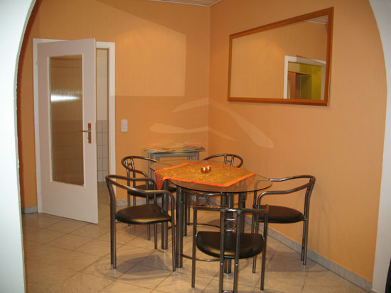 Eßzimmer mit großem Glastisch und 6 Stühlen